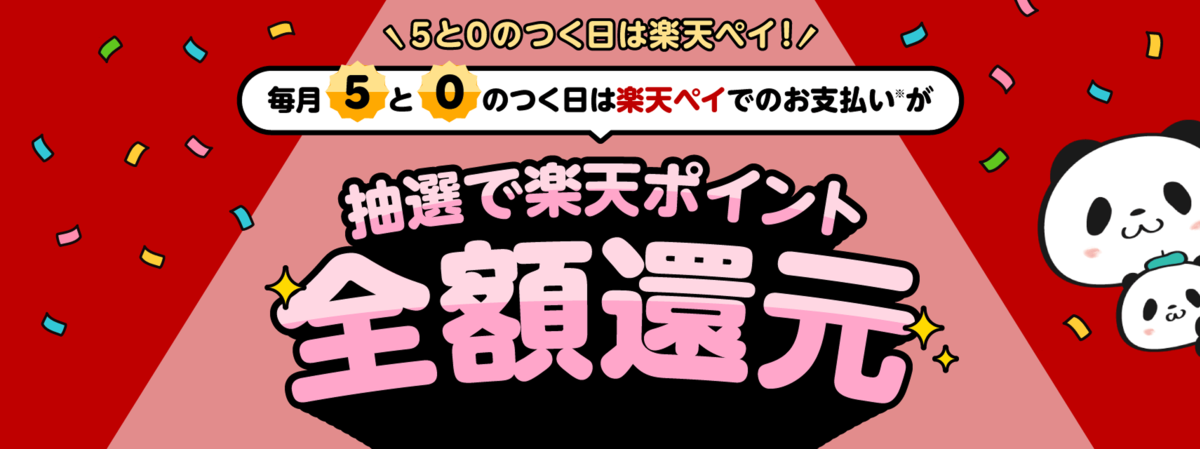 また、5と0の付く日の楽天ペイでのお買い物は、抽選でお支払い額全額を楽天ポイントで還元するキャンペーンも実施しています
